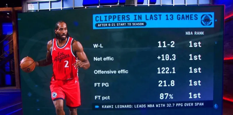 kaiyun-快船过去13场11胜2负,净效率、进攻效率、场均罚球联盟第一